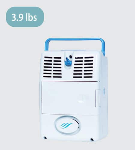 The AirSep Focus is by far the lightest portable oxygen concentrator on the market today. But don’t let it’s size fool you, the Focus is a very effective concentrator. The Focus is a pulse delivery concentrator that includes batteries that last 3 hours with a quick recharge time of only 4 hours. The Focus is also FAA approved, making it one of the best lightweight portable oxygen concentrators for travel.