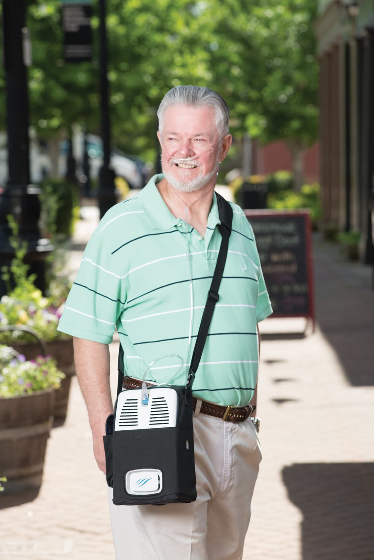For convenience, the AirSep FreeStyle 5 can be worn by shoulder strap, backpack harness, or carrying case. The carrying case contains pockets to hold the optional External Battery Cartridges. The AirSep FreeStyle 5 is FAA-approved for on-board and in-flight use. The AirSep FreeStyle is used worldwide.